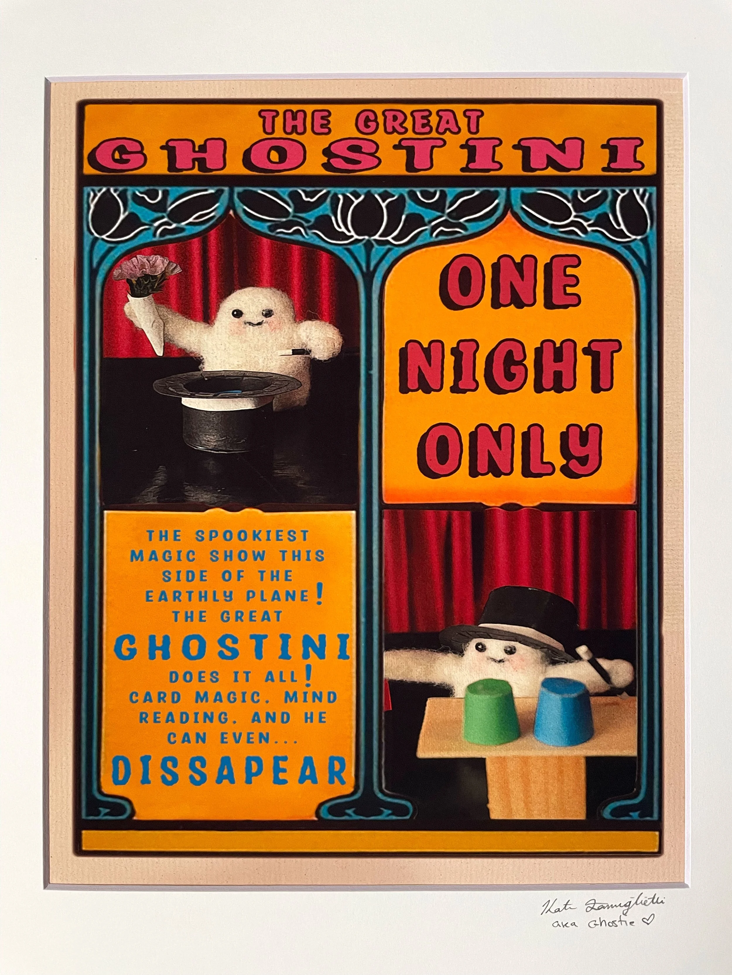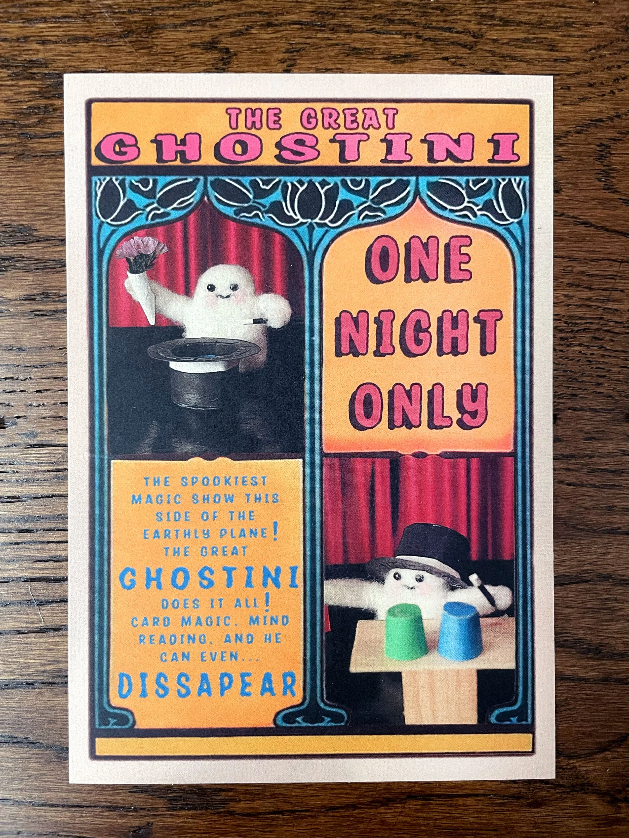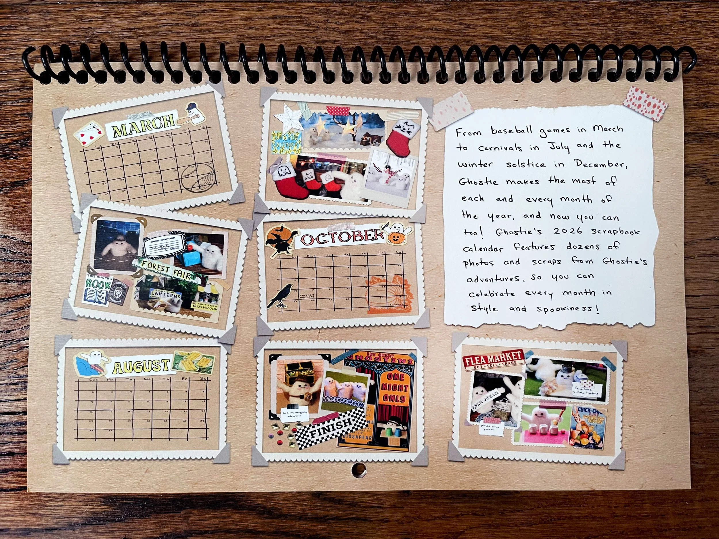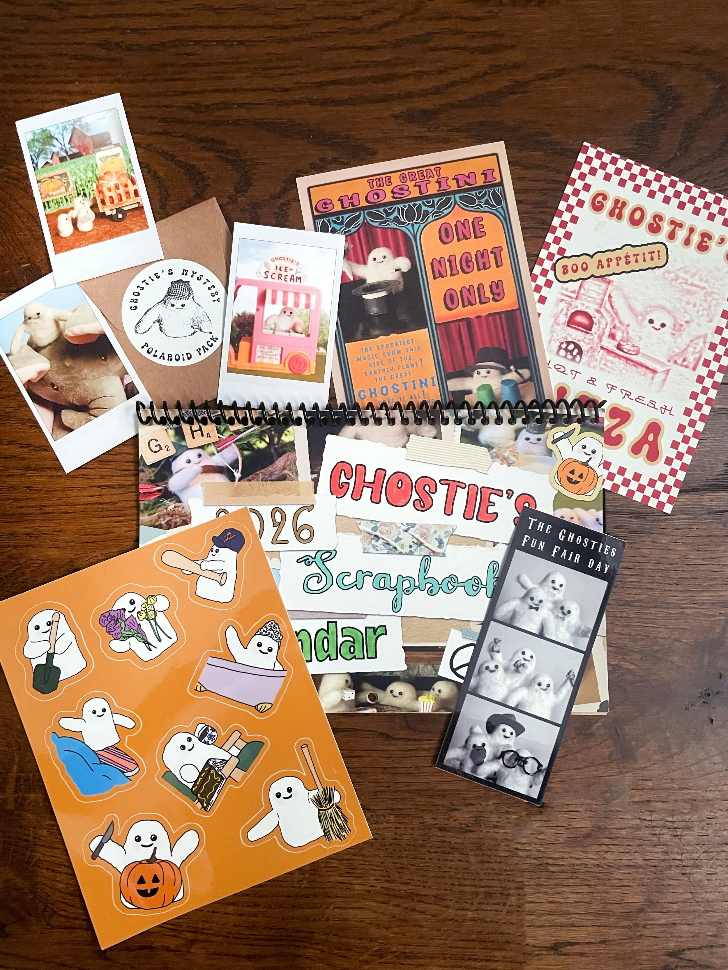 Categories: All Calendar Wearables Cards and Stickers Prints Shop All | Calendar | Wearables | Cards and Stickers | Prints | All Calendar Wearables Cards and Stickers Prints Ghostie's 2026 Scrapbook Calendar $18.00 Ghostie's 2026 Scrapbook Calendar DELUX EDITION $36.00 Pumpkin Enamel Pin $12.00 "A Merry Halloween" Print from $25.00 "The Great Ghostini" Print from $25.00 "The Many Faces of Ghostie" Print from $25.00 Ghostie's Mystery Polaroid Pack $8.00 Ghostie's "Charming" Bracelet $36.00 "Greetings From the Pumpkin House" Post Card $3.00 Pizza Postcard $3.00 "The Great Ghostini" Postcard $3.00 Ghostie Baseball Card $3.00